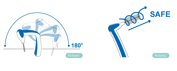 - Custom formulated flexible handle allows 180° bend for thorough cleaning. (Picture 1)